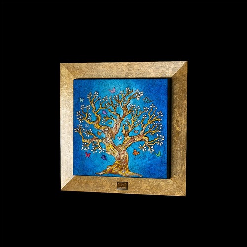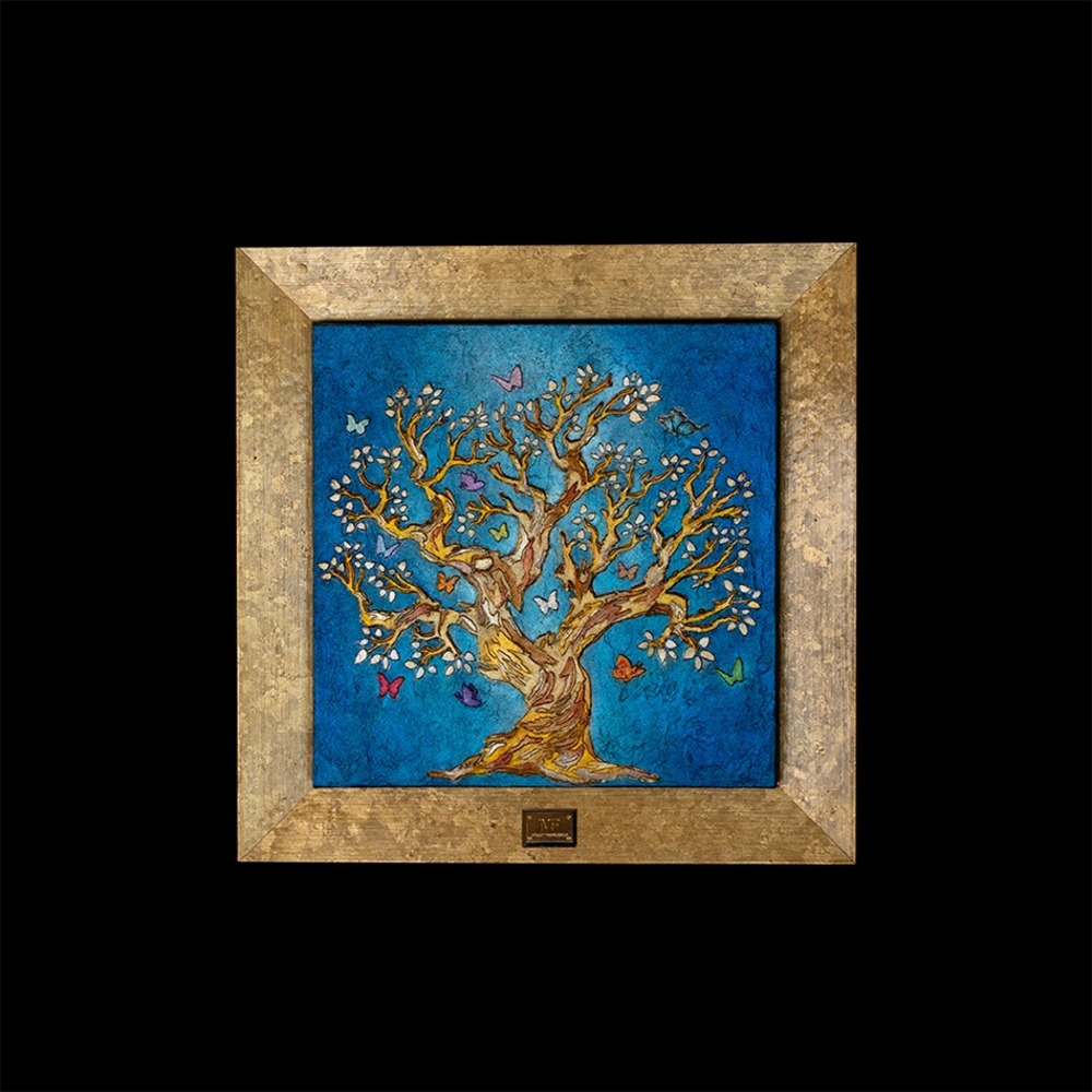 フランチェスコ・マッツィは、MAZZIブルーの深淵に純金の輝きを宿した“魔女の木”として作品に昇華しました。