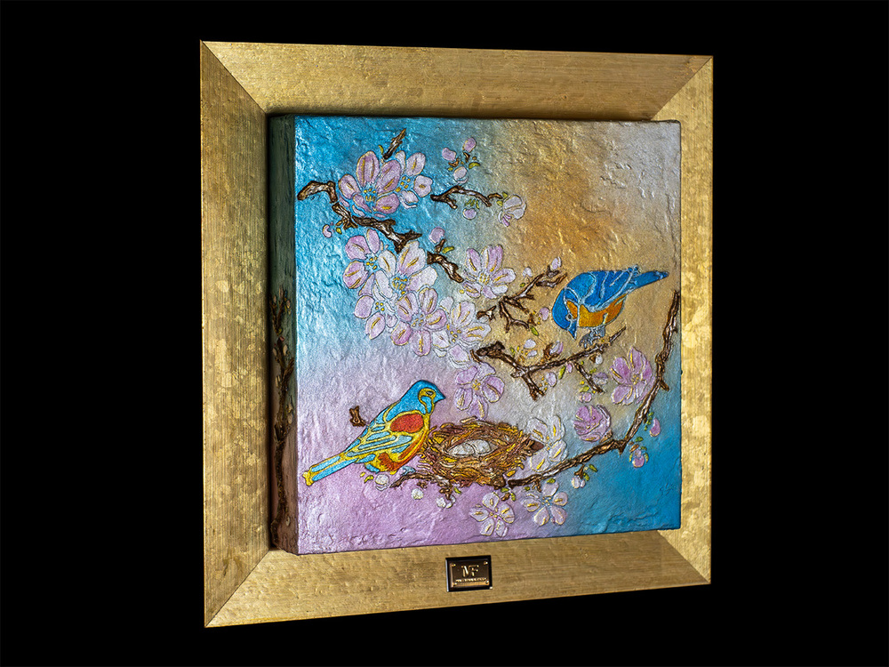 Artist: Francesco Mazzi Title: La Mia Casa Felice (My Happy Home M) Material: Panel canvas, MAZZI FINE ART original oil painting MAZZI FINE ART original frame 3D FRAME PUSHUP, pure gold leaf finish Size: Canvas | W30cm x H30cm, Frame | W41cm x H41cm